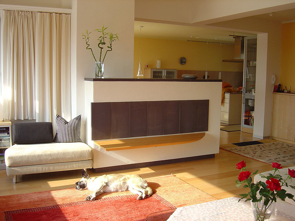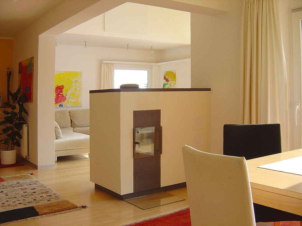 Akár a helyiség közepén is elhelyezhető alacsony, de hosszú kályha, térelválasztóként is funkcionálhat, és akár fűtött háttámlát biztosíthat az étkező asztal melletti ülőalkalmatossághoz.